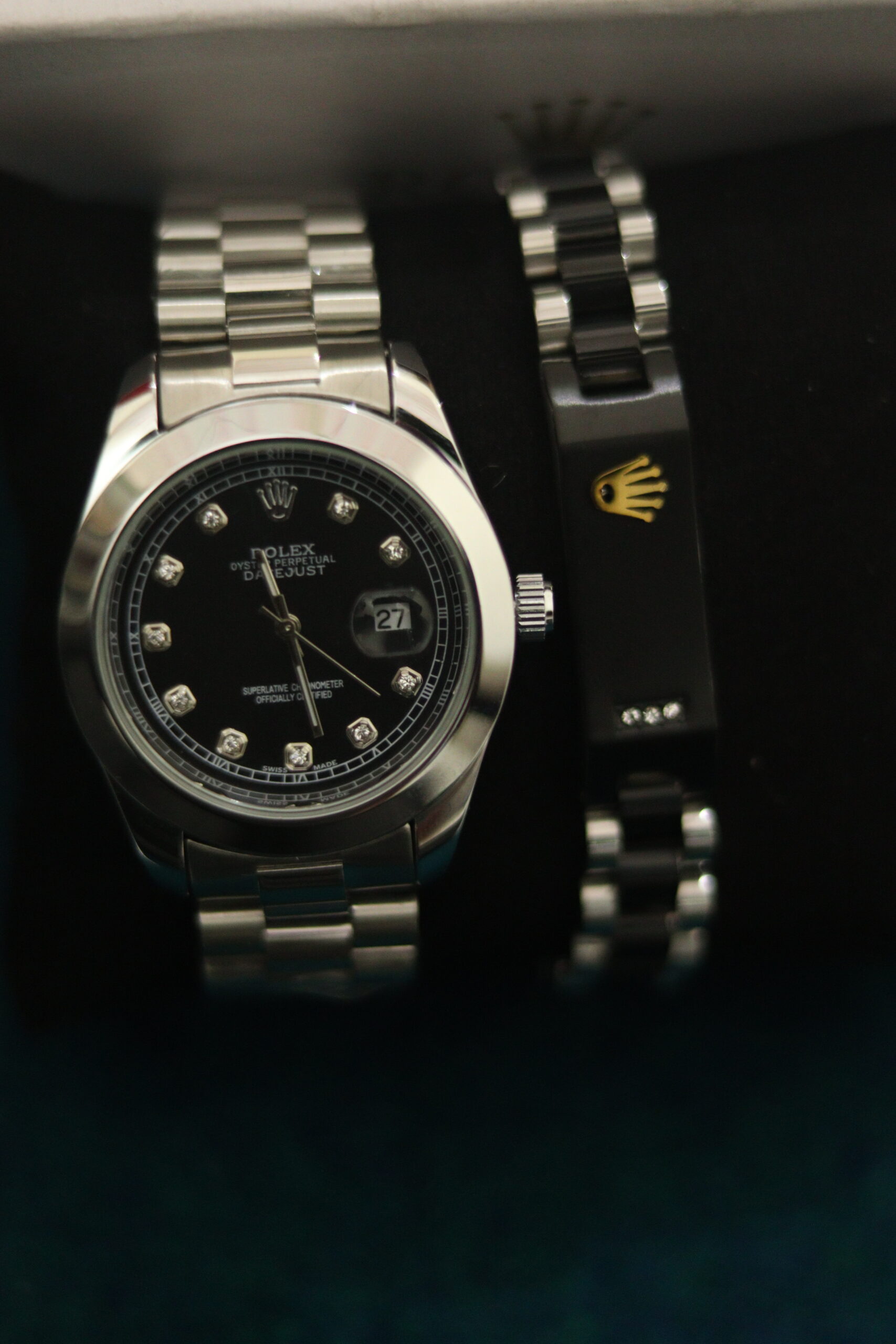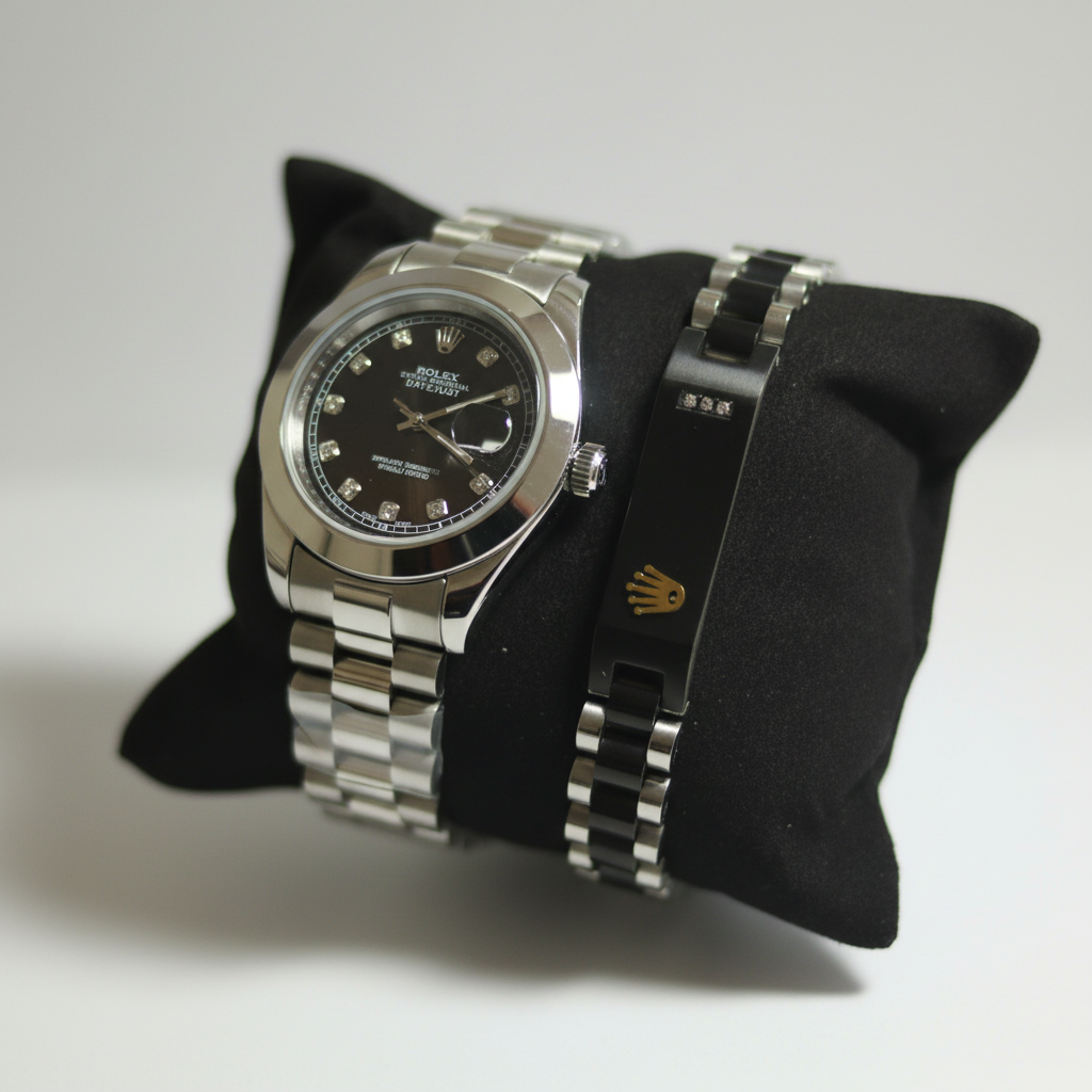 Elevate your look with our Premium Stainless Steel Watch and Bracelet for Men, designed for those who appreciate bold fashion and classic elegance. Crafted from high-quality stainless steel, this 100g timepiece offers durability, lasting shine, and comfortable everyday wear. The crystal-style hour markers and polished finish add a refined, luxury touch.