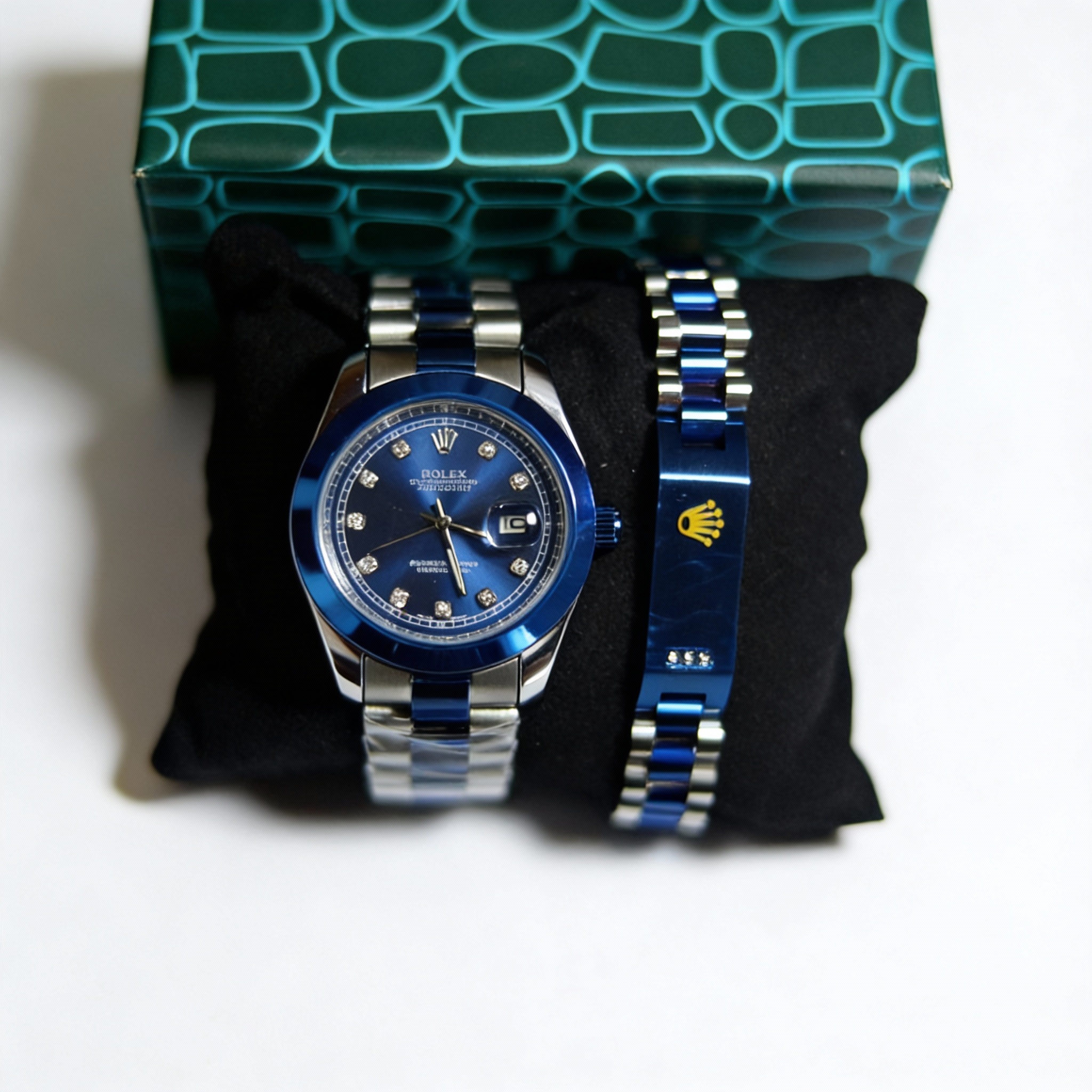 Available in blue, gold, and black, you can choose your favorite color and pair it with a matching bracelet for a complete statement look. Powered by precise quartz movement, it ensures accurate timekeeping while maintaining effortless style for work, weddings, parties, or daily wear.